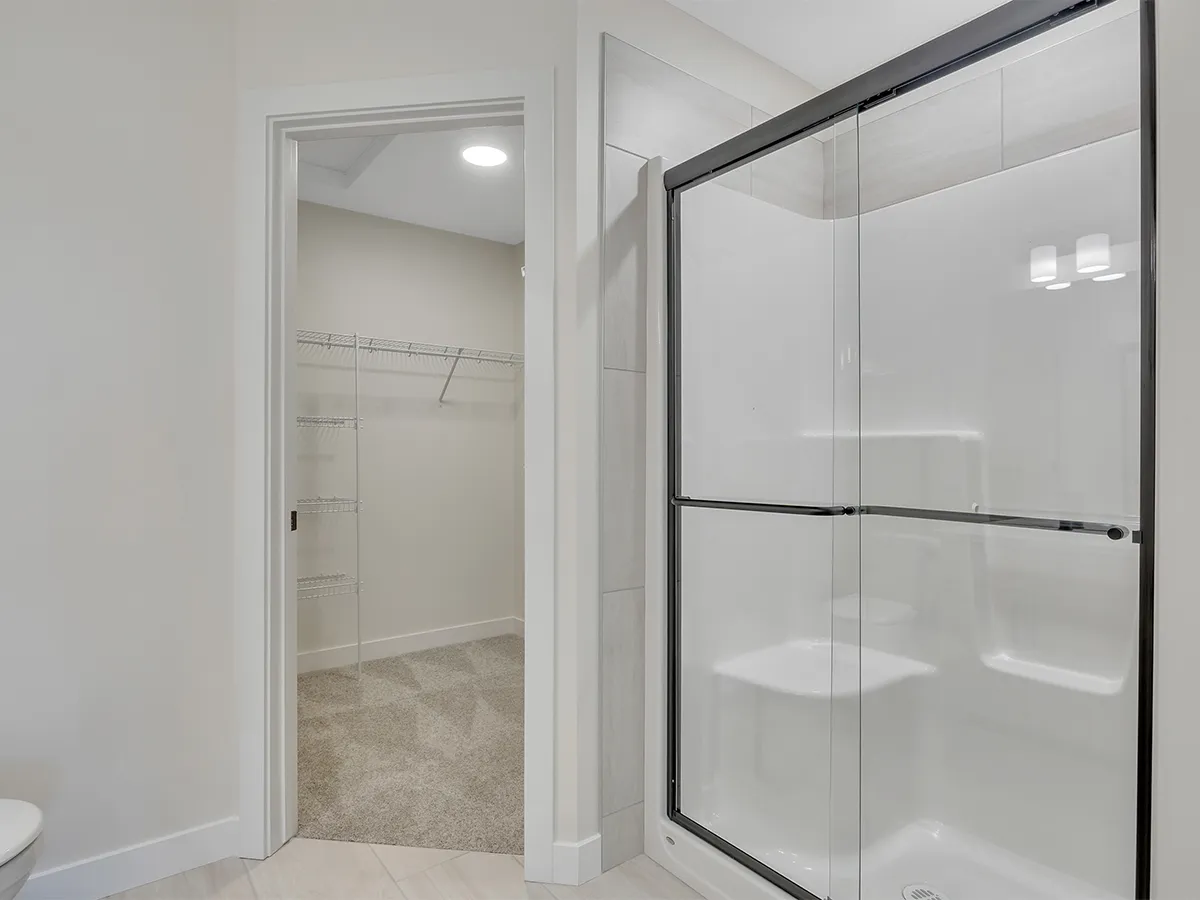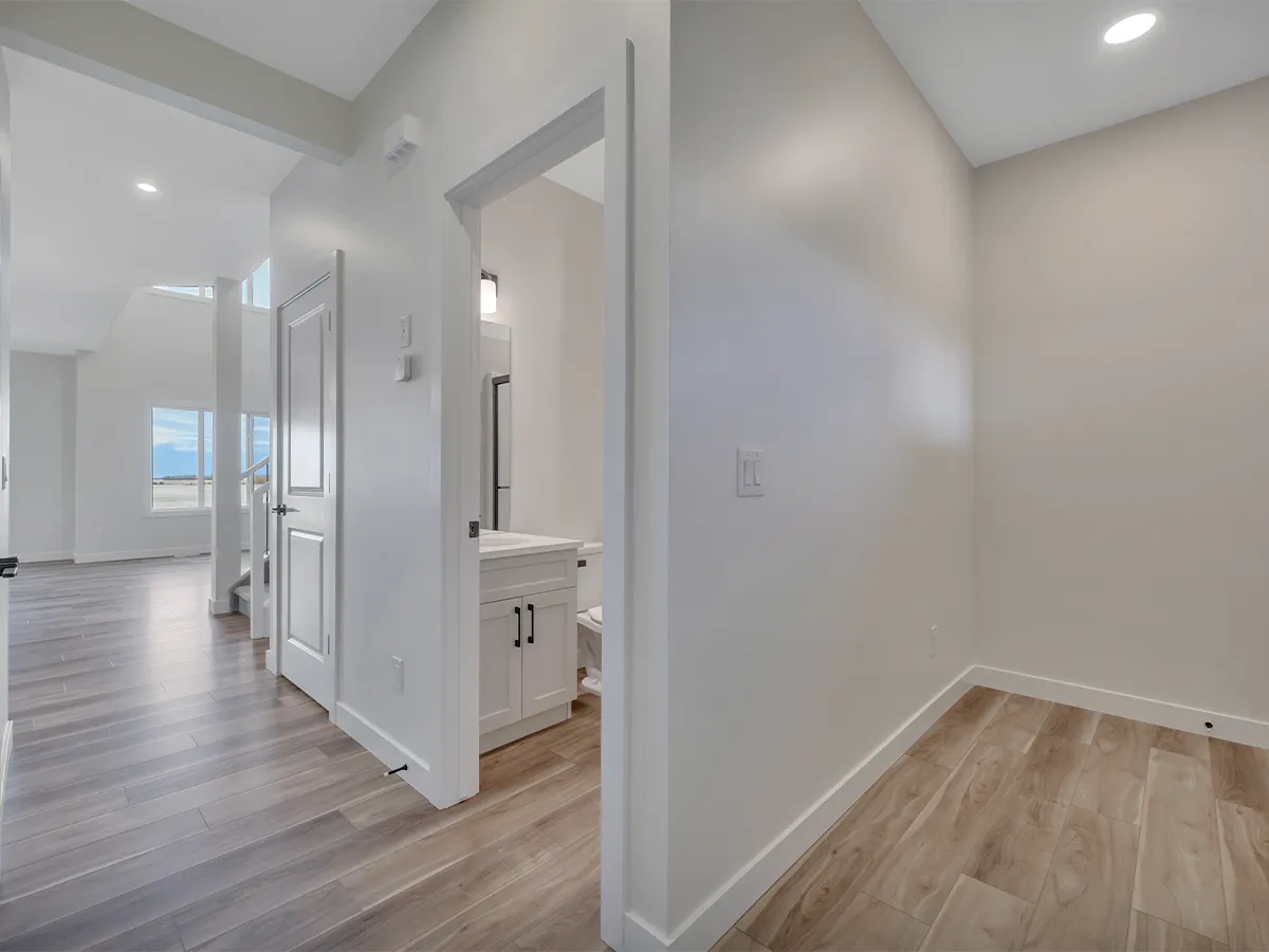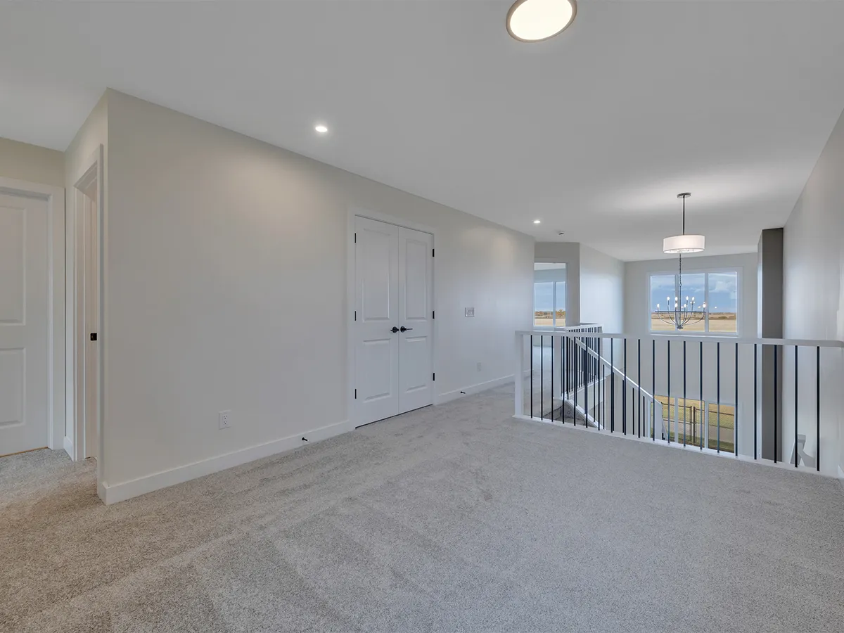 Upstairs, the bonus room overlooks the great room below, adding to the sense of openness. The primary suite features a walk-in closet and a spa-like ensuite with dual sinks, a drop-in tub, and a separate shower. Both secondary bedrooms include their own walk-in closets and built-in study nooks, offering dedicated spaces for learning or creativity. A full bathroom and upstairs laundry room round out this thoughtfully designed second floor.