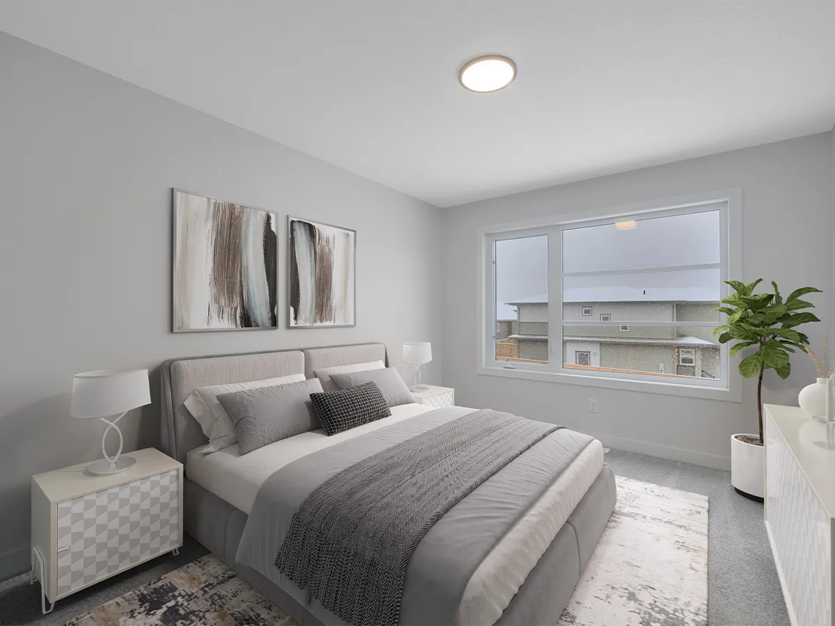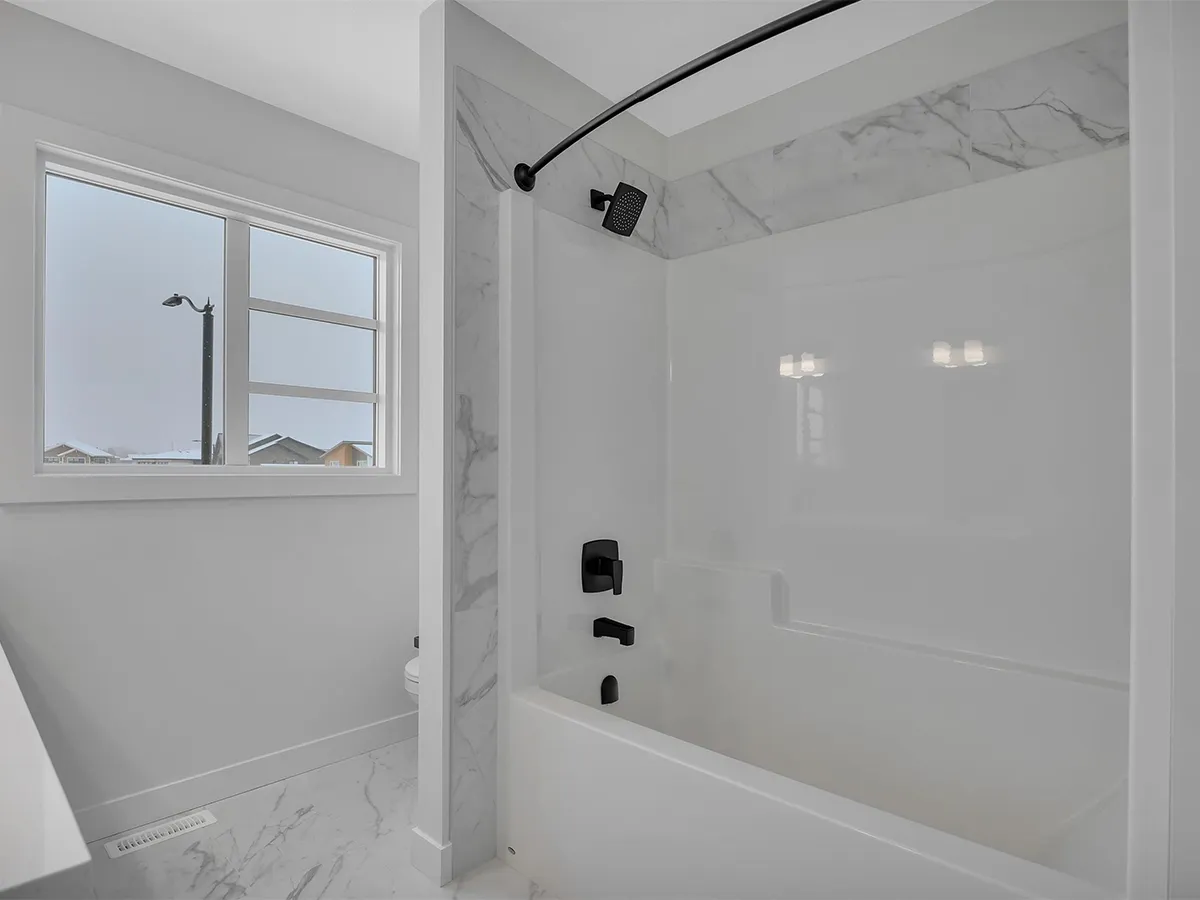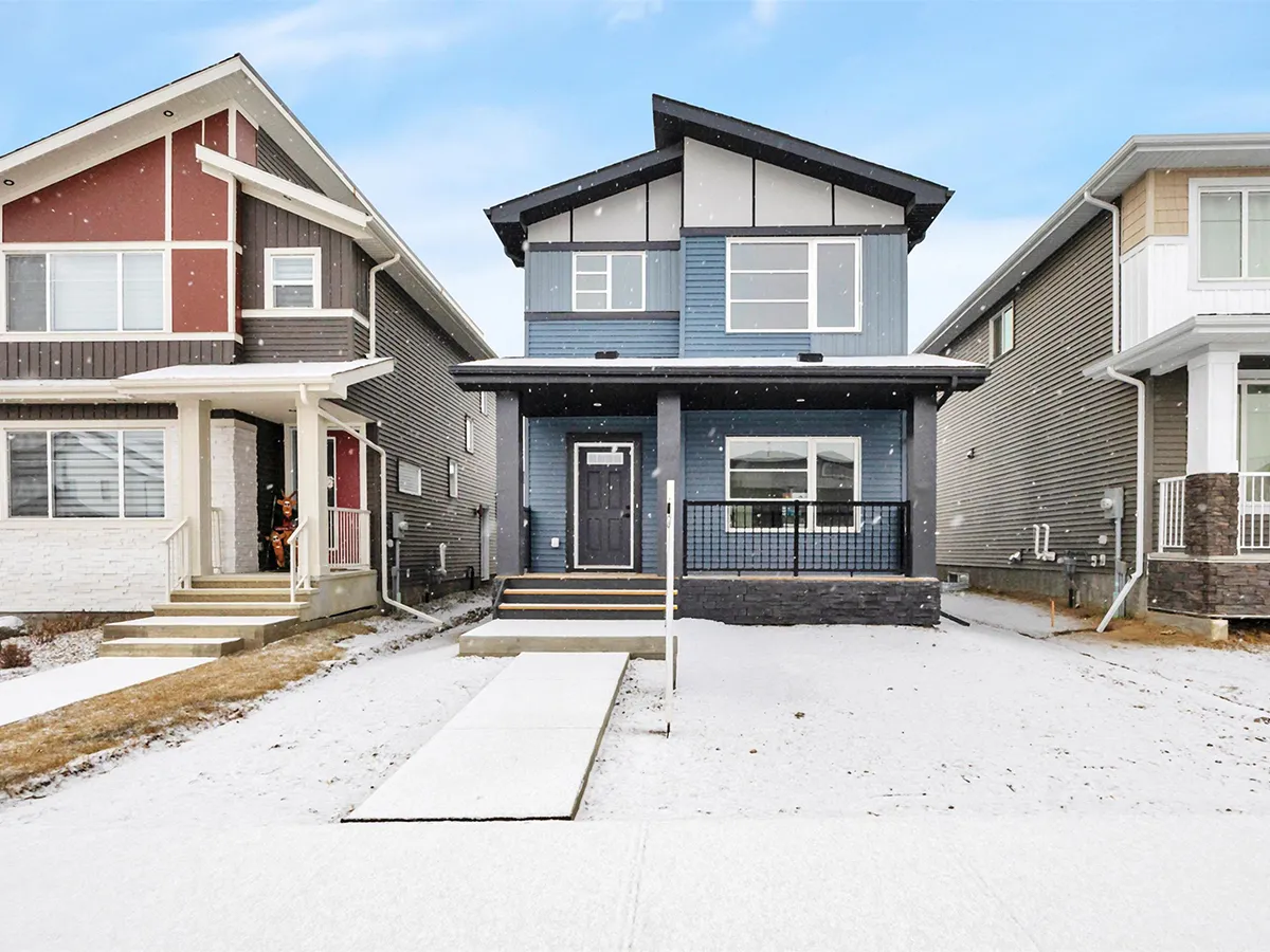 The main floor features a bright, open-concept layout where the kitchen, dining area, and great room flow together for easy entertaining and connected family life. A large island with flush eating ledge, quartz countertops, hood fan above the stove, and walk-in pantry give the kitchen both style and functionality. The side entrance adds privacy and flexibility, making it a great option for future basement development.
